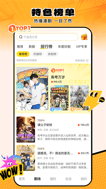 热门榜单推荐:提供实时热门榜单,帮助用户掌握潮流,告别剧荒;