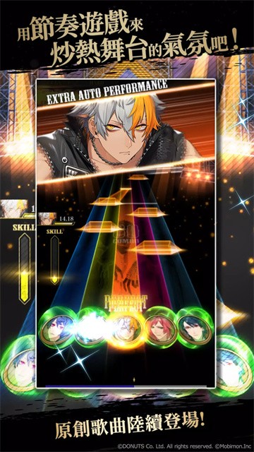 2、演出中会根据连击数、技能触发等,实时变化华丽的舞台灯光和背景特效。
