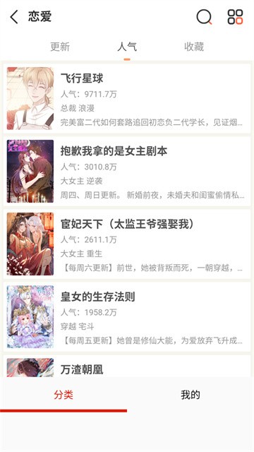 1、打开软件进入后可以看到不同分类的漫画资源。