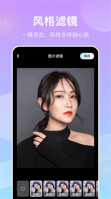 1、内置多种高级滤镜素材,支持一键快速应用。