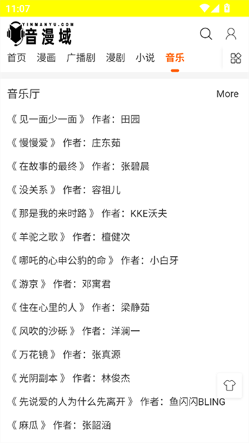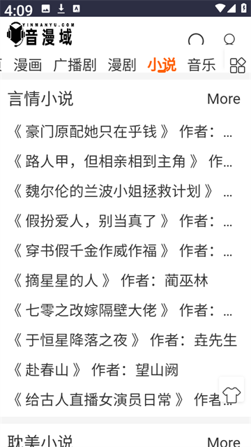 4、如果想快速查找目标内容,在顶部搜索框输入关键字,即可筛选出感兴趣的漫画、小说或音乐资源。