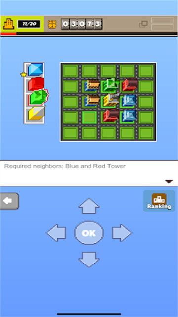 1、游戏中通过下方的方向键移动,点击中间OK即可建造。