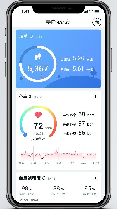 3.健康指标监测:实时追踪心率、血氧饱和度、血压等生理参数,并自动生成历史数据记录,便于用户查看日常健康变化。