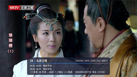 2、点击左侧屏幕或者使用遥控器按菜单选项即可唤起电视频道列表。