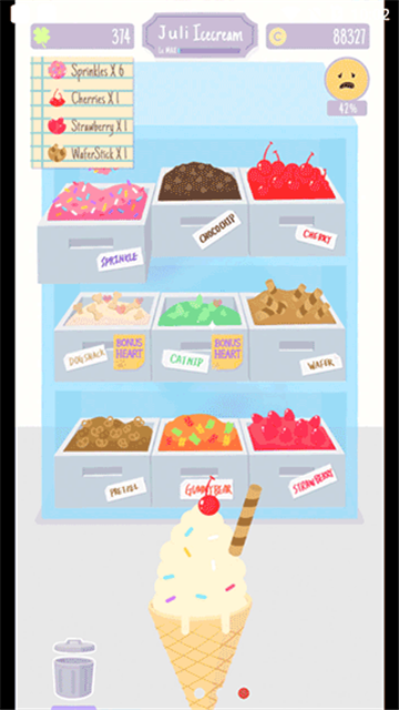 5、挤压冰淇淋,如果没有达到合适的就要丢进垃圾桶;