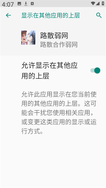1、在本站下载安装路散弱网并打开,首次使用需授予悬浮窗权限。