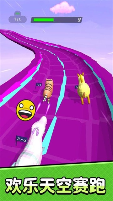 1、核心围绕着空中赛道玩法展开,所有动物角色都会在梦幻的赛道之中展开激烈竞速,全面突破传统跑酷玩法。