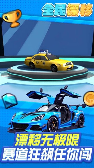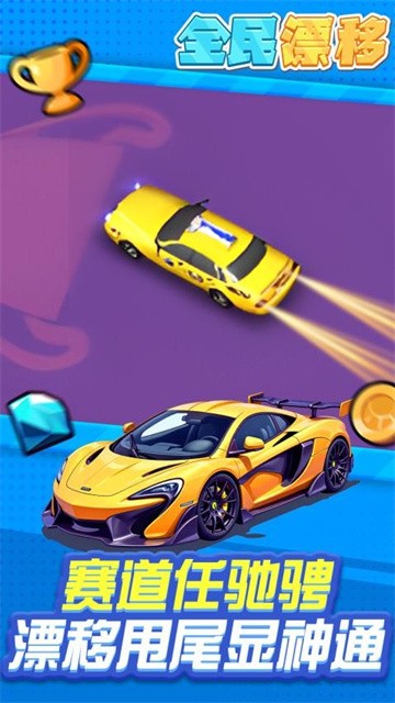 赛道驰骋自由操控车辆,随时都能控制汽车进行漂移冲刺,还能利用独特的甩尾技巧克服难题。