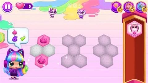 一款消除挑战,收集各种各样的萌宠的休闲闯关游戏,结合色彩鲜艳的画面与轻松休闲的节奏,吸引玩家通过消除解锁萌宠、探索剧情,玩家通过交换相邻方块,相邻方块移动慎重思考,所有方块的转移都会产生意想不到的效果,全面布置就能大大提高整体评价,这也能获取丰富的资源材料,喜欢的朋友快来下载试试吧。