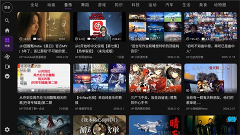 3、如果需要再细分出来,在分区板块就可以切换所有的内容。音乐、舞蹈、游戏、科学、运动、知识等等19个分类,完全给搬到TV端了。