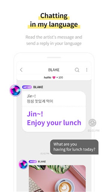 在lysn软件的bubble泡泡专区中购买自己喜欢的爱豆的泡泡业务,点击爱豆头像就可以和喜欢的爱豆聊天了,但是泡泡内的所有内容都是私密的,不允许外传的。