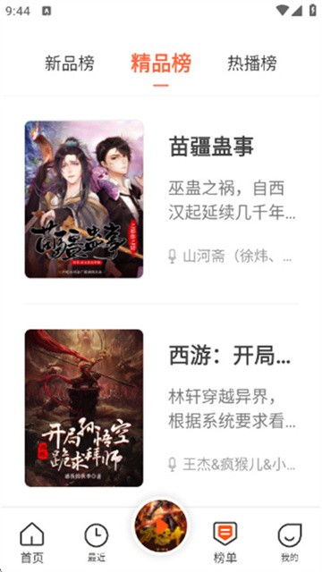 4、榜单与推荐:提供“新品榜”“精品榜”“热播榜”,推荐高人气有声内容;首页展示“热播推荐”,更新热门作品。