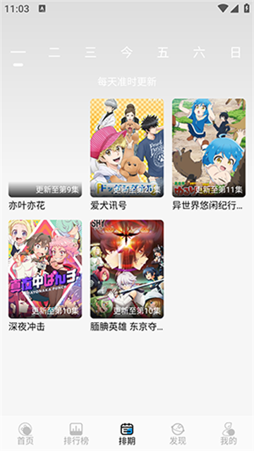 5、“排期”页面会显示每日更新档期,方便掌握喜欢动漫的播放时间。