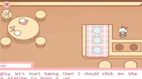6、完成后,回到餐厅,将桌子上制作好的点心滑动到顾客面前,邦尼就会自动前往送餐,继续完成接下来的订单,招待顾客。