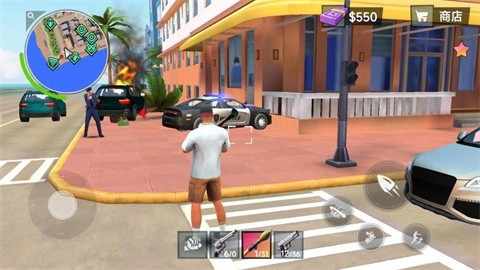 1、进入游戏后操控主角在都市街道中穿梭,捡取沿途武器装备,开启自由冒险之旅,承接各类任务。