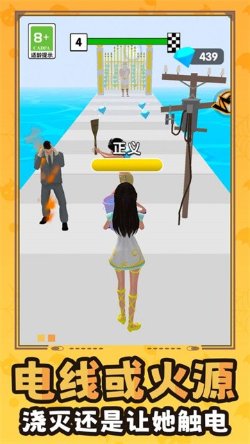 2、收集道具和金币:在奔跑的过程中,玩家可以收集道具和金币,道具可以帮助少女在游戏中更好地应对障碍,金币可以用来购买装扮和提升技能。
