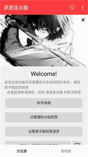 打开源源连点器App,根据提示开启悬浮窗权限和无障碍服务权限,确保软件能正常控制屏幕和执行操作。2、进入点击器设置: