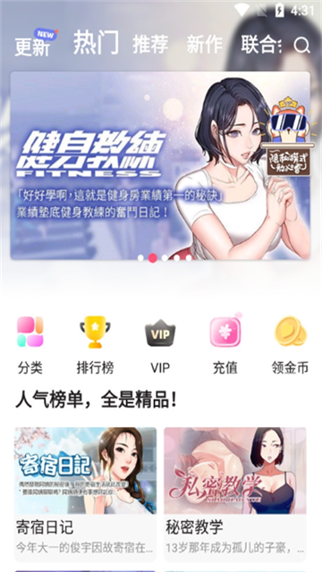 1、在漫画首页可以看到热门和推荐