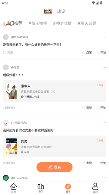 这里聚集了一群同样爱看漫画的小伙伴,大家可以一起聊剧情、分享感受,可热闹了。