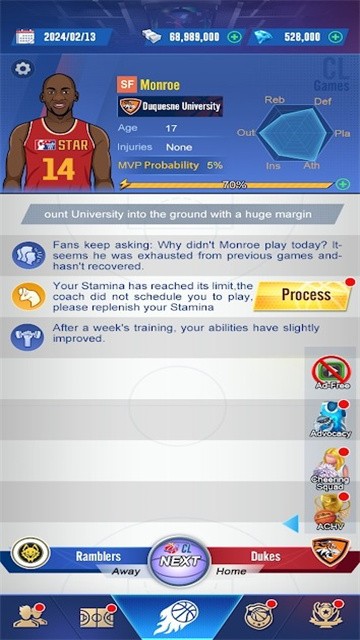 1、下载安装后进入游戏,点击开始正式开启篮球生涯。