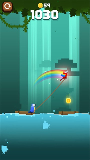 5、绳索物理操控系统:跳跃距离受控于按屏时长,长度限制,玩家需精准判断平台间距与绳长关系,避免因拉扯不当导致失衡坠落。