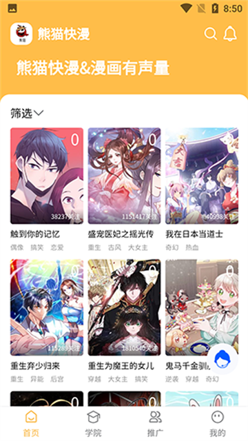 熊猫快漫是一款免费漫画阅读软件,覆盖了全网的漫画内容,足用户多样化的需求。漫画画质清晰、观看流畅,可以收藏、离线缓存、智能搜索自己喜欢的漫画,不断更新的漫画资源库,感受新鲜精彩的漫画作品,所有漫画作品都是很火爆的,详细的题材分类,查找起来更加方便。