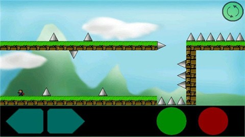 2、使用左边两个按钮控制角色左右移动,点击绿色按钮进行跳跃、红色按钮进行发射子弹。