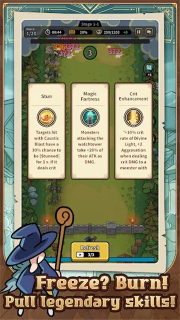 视觉华丽的魔法特效:虽然是塔防割草游戏,但技能特效十分华丽。满屏的雷电链、爆炸的火焰与冻结的冰霜交织,配合巨龙倒下的震撼反馈,带来极佳的视觉享受。