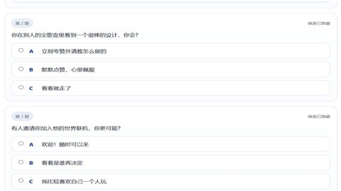 3、根据题目内容依次选择最符合自己直觉的选项,全部答完后点击提交即可。