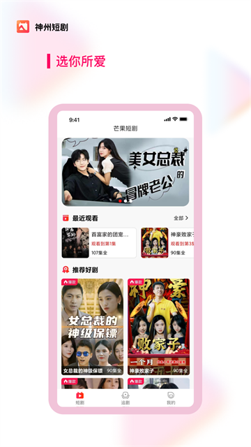 神州短剧是一款很不错的观看短剧的软件,神州短剧app拥有丰富的短剧内容,实时更新,让你在忙碌的生活中也能轻松享受精彩的剧情,海量短剧资源等你来看,系统还会智能推送用户喜欢看的视频类型,非常的实用便捷,感兴趣的小伙伴记得来本站下载!