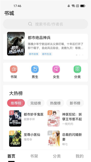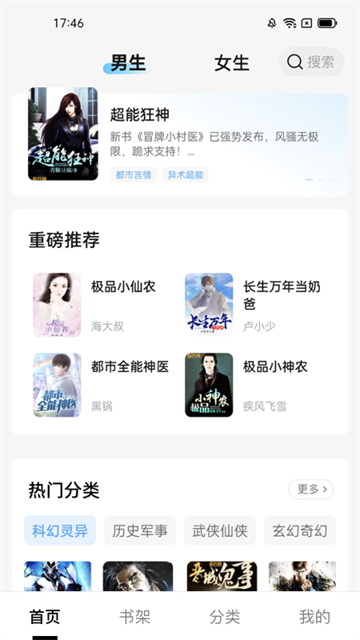 2、有智能的分类,男生版块,女生版块,网络专区以及新书排行榜等,不同的模式。