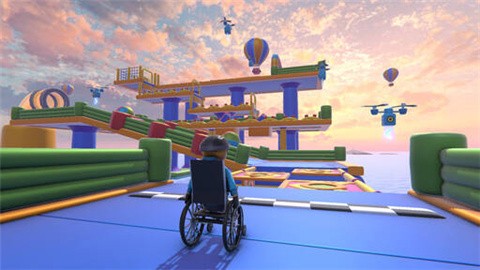 3、特殊特技:在特定的轨道上,玩家可以控制轮椅角色执行高难度的特技,如跳跃,漂移,甚至在空中翻转。成功触发这些特技也会获得速度加成。