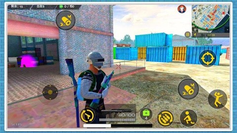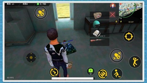 4、左侧轮盘控制移动,右侧控制奔跑跳跃瞄准射击,击杀敌人还能舔包。