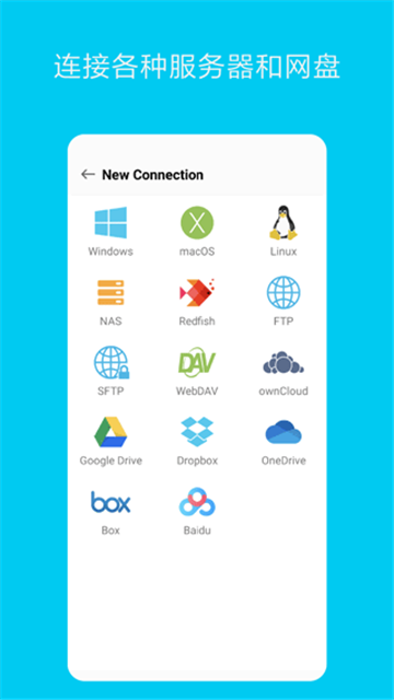 支持macOS、Windows、Linux、NAS和路由器Wi-Fi硬盘等,也可以访问WebDAV, FTP和SFTP等服务器。