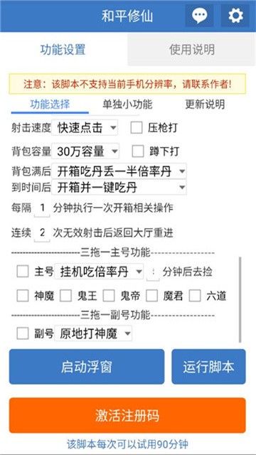 和平修仙是一款专为吃鸡游戏量身打造的辅助工具,为玩家提供了游戏过程中最常用且关键的辅助支持,无需root权限即可安全使用,还可以设置摇一摇停止脚本,来电时停止脚本,启停脚本时震动等等,满足用户的各项需要。