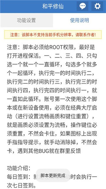 账号第一次使用这个脚本或在新设备使用,必须在经典大厅启动(进行设置流畅画质和键位重置),就是画质必须设置为流畅,操作键位必须重置,不然会卡住,如果图标上出现手指指导提示,就手动消除掉,不然会卡,遇到其他BUG就在群里反馈