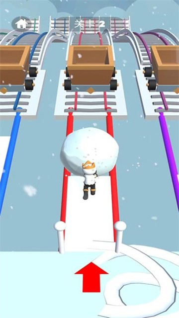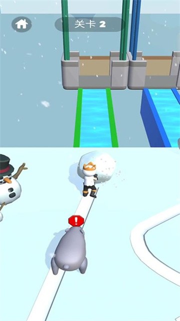 5、灵活转向避开所有正面碰撞,任何撞击都会导致速度下滑,还会影响雪球堆积状态,需要集中精力控制行动。